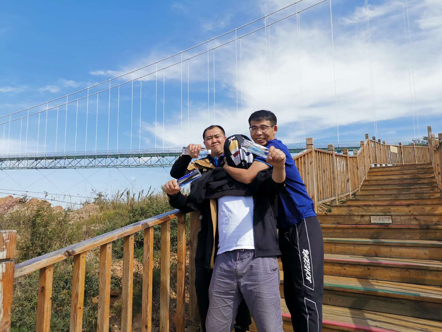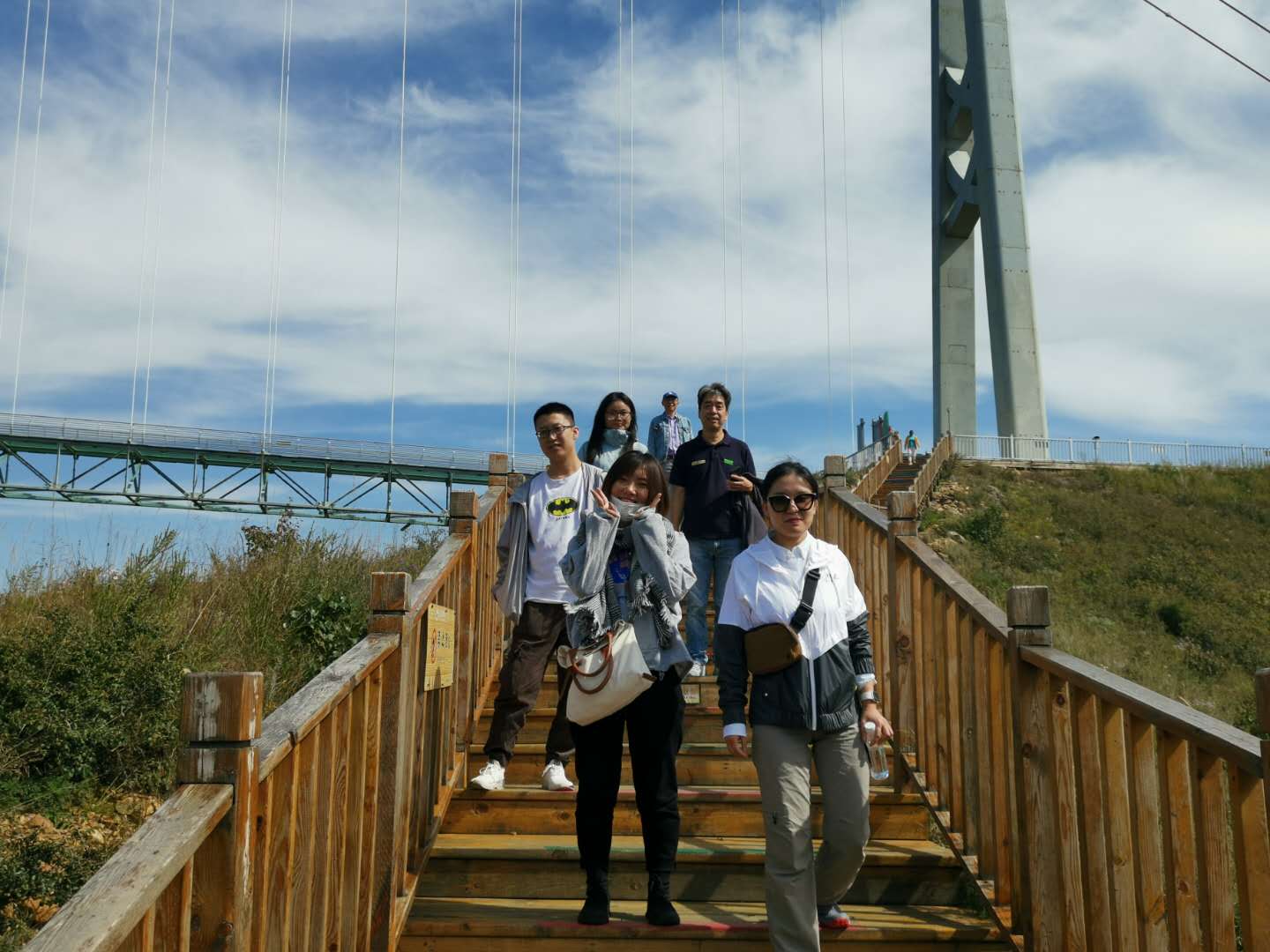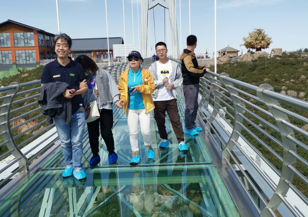 14日下午游覽車載著一行人行駛在山間的小路上,清風(fēng)徐徐,好不愜意,接著迎來了全長639米的玻璃棧道挑戰(zhàn),驚心動魄,姿態(tài)百出。