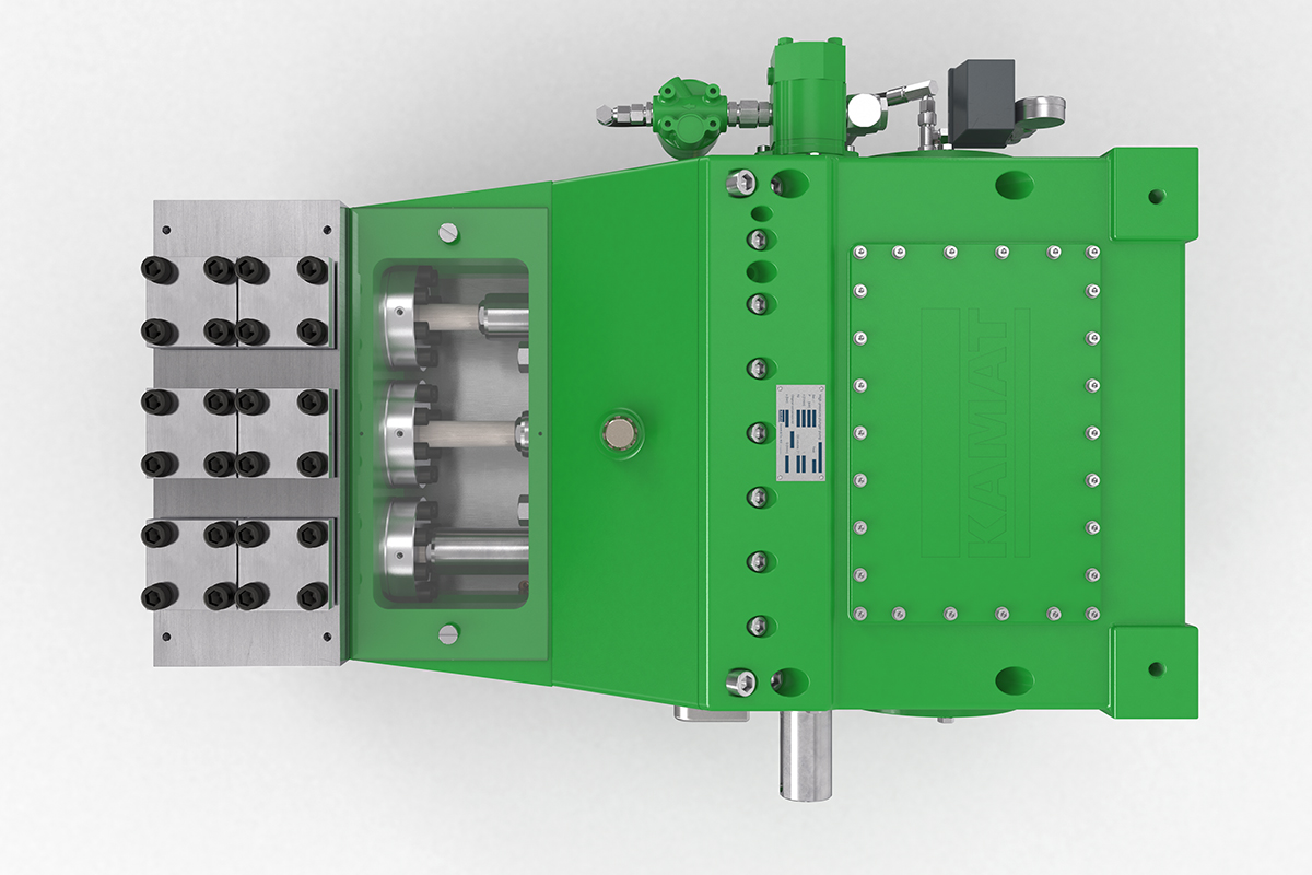 K35000高壓泵的驅(qū)動(dòng)功率為350 kW,非常適合噴射和液壓應(yīng)用。 例如,它經(jīng)常與大型移動(dòng)式噴射系統(tǒng)一起使用,已在化工行業(yè)服務(wù)多年,并在采礦行業(yè)滿足流量從400至600 l升/ 分鐘的需求。 在這種情況下,帶有強(qiáng)制潤滑齒輪和油冷卻器的K35000可以滿足24/7全天候運(yùn)行的要求。 K35000高壓泵采用經(jīng)典的KAMAT模塊化組件系統(tǒng)構(gòu)建,因此可以靈活地適應(yīng)工作壓力和介質(zhì)等要求。 因此,它也經(jīng)常用于過程處理領(lǐng)域。